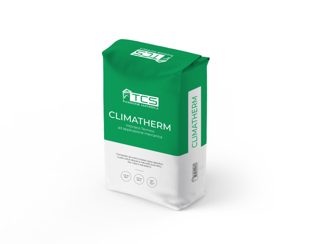 Termointonaco strutturale. Eco Intonaco Biocompatibile, Coibente, Deumidificante preconfezionato in polvere per interni ed esterni, conforme alla norma UNI EN 998-1. CLIMATHERM AR è totalmente privo di cemento o di composti appartenenti al gruppo del clinker.