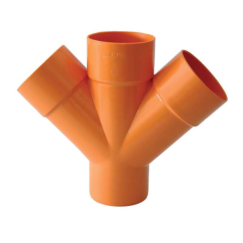 Derivazione in PVC doppia a riduzione, realizzata con sottoprodotti interni.