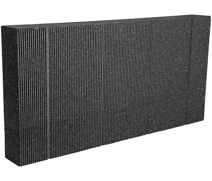 Pannello per isolamento termico detensionato realizzato in polistirene espanso sinterizzato EPS additivato di grafite, tagliato da blocco ed ideale per l'applicazione a cappotto.
