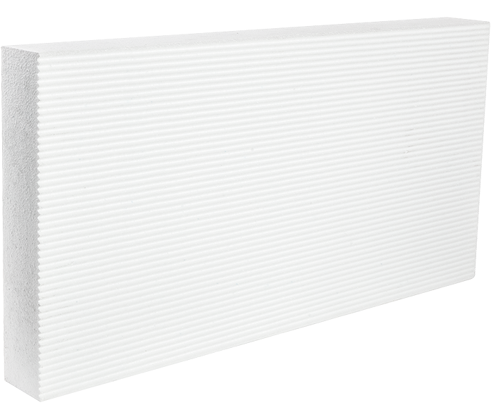 Pannello per isolamento termico detensionato realizzato in polistirene espanso sinterizzato EPS, tagliato da blocco ed ideale per l'applicazione a cappotto.