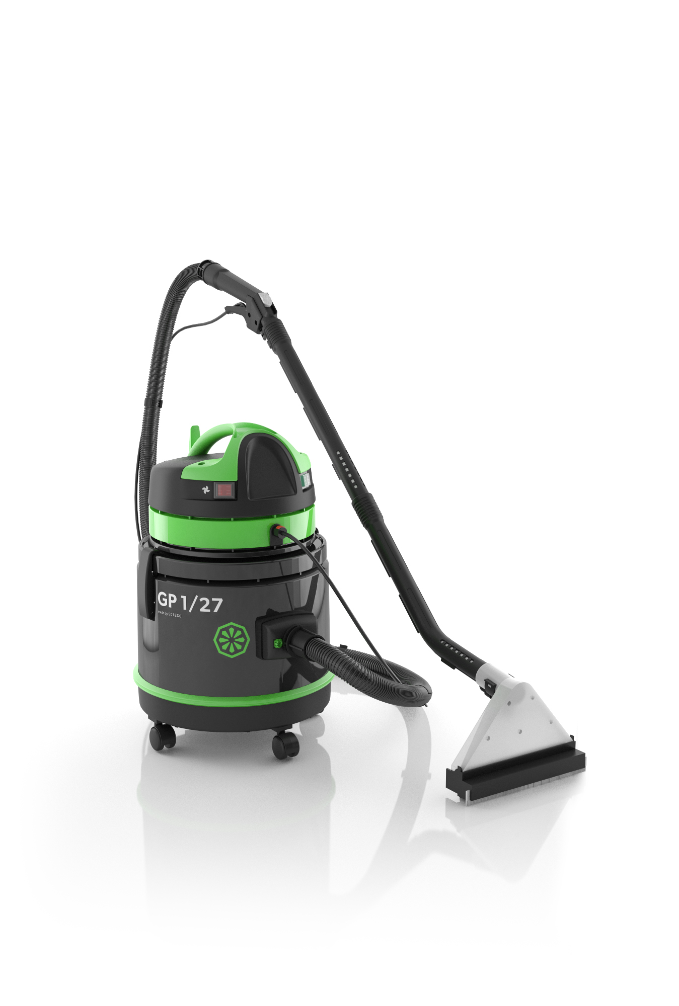 Aspiratore ad iniezione-estrazione con pompa integrata da 48W per pulizia imbottiti, moquette e tappezzeria. Fusto in plastica da 27 litri con contenitore detergente interno. Accessoristica completa per aspirazione secco, liquidi e lavaggio.