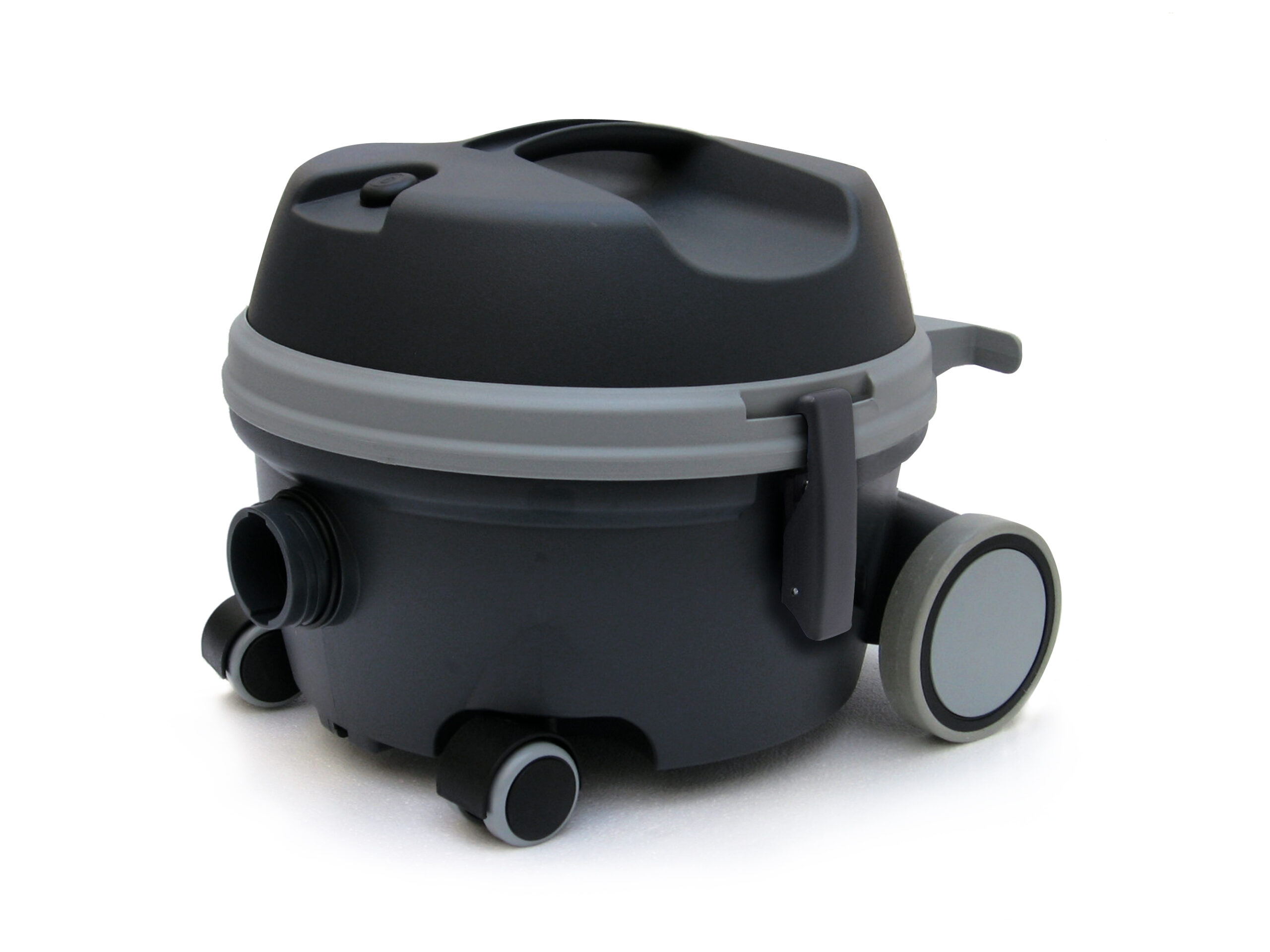 Aspirapolvere ad uso professionale per pulizia indoor di ambienti di piccole dimensioni. Composto da fusto in plastica con capacità 12 litri, ruote anteriori pivottanti e posteriori di grande dimensione.