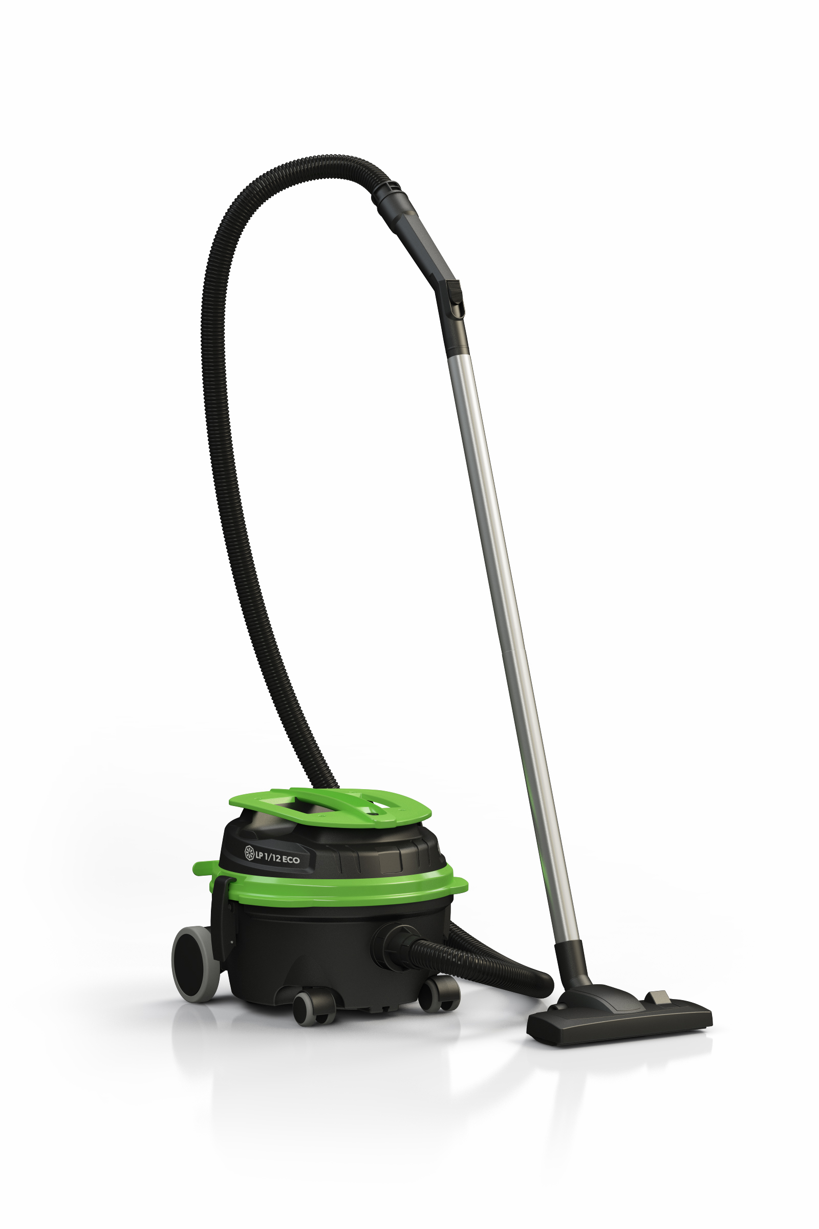 Aspirapolvere ad uso professionale per pulizia indoor di ambienti di piccole dimensioni. Composto da fusto in plastica con capacità 12 litri, ruote anteriori pivottanti e posteriori di grande dimensione. Design compatto sviluppato per conferire ergonomia all'operatore.