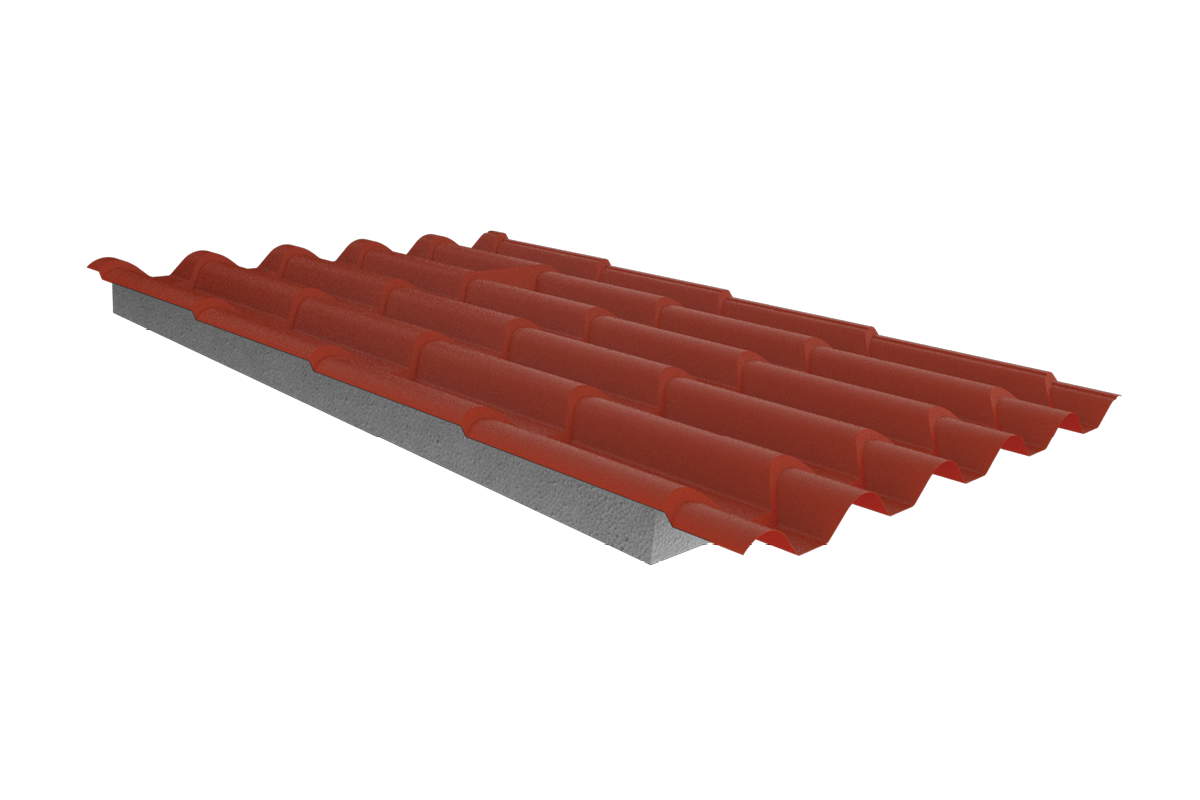 pannello preformato accoppiato a lamiera esterna effetto tegola rossa o tegola anticata ,realizzato in Neopor .