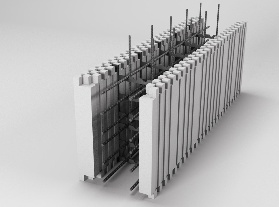 Parete prefabbricata portante con o senza rivestimento lapideo e materiali riciclati.