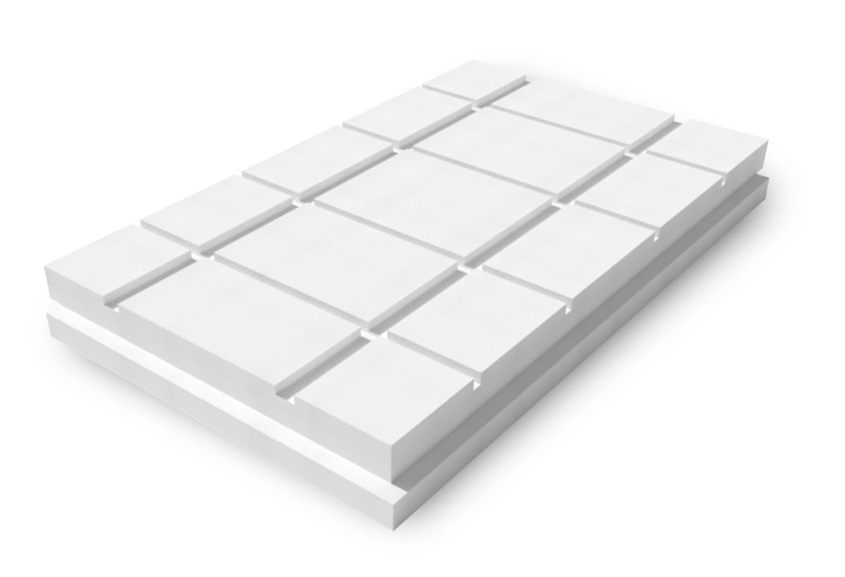 Pannello termoisolante in polistirene espanso sagomato per passi tegola (315-330-345-350-360-375) che consente l’allineamento delle tegole a regola d’arte e ne facilita la posa.