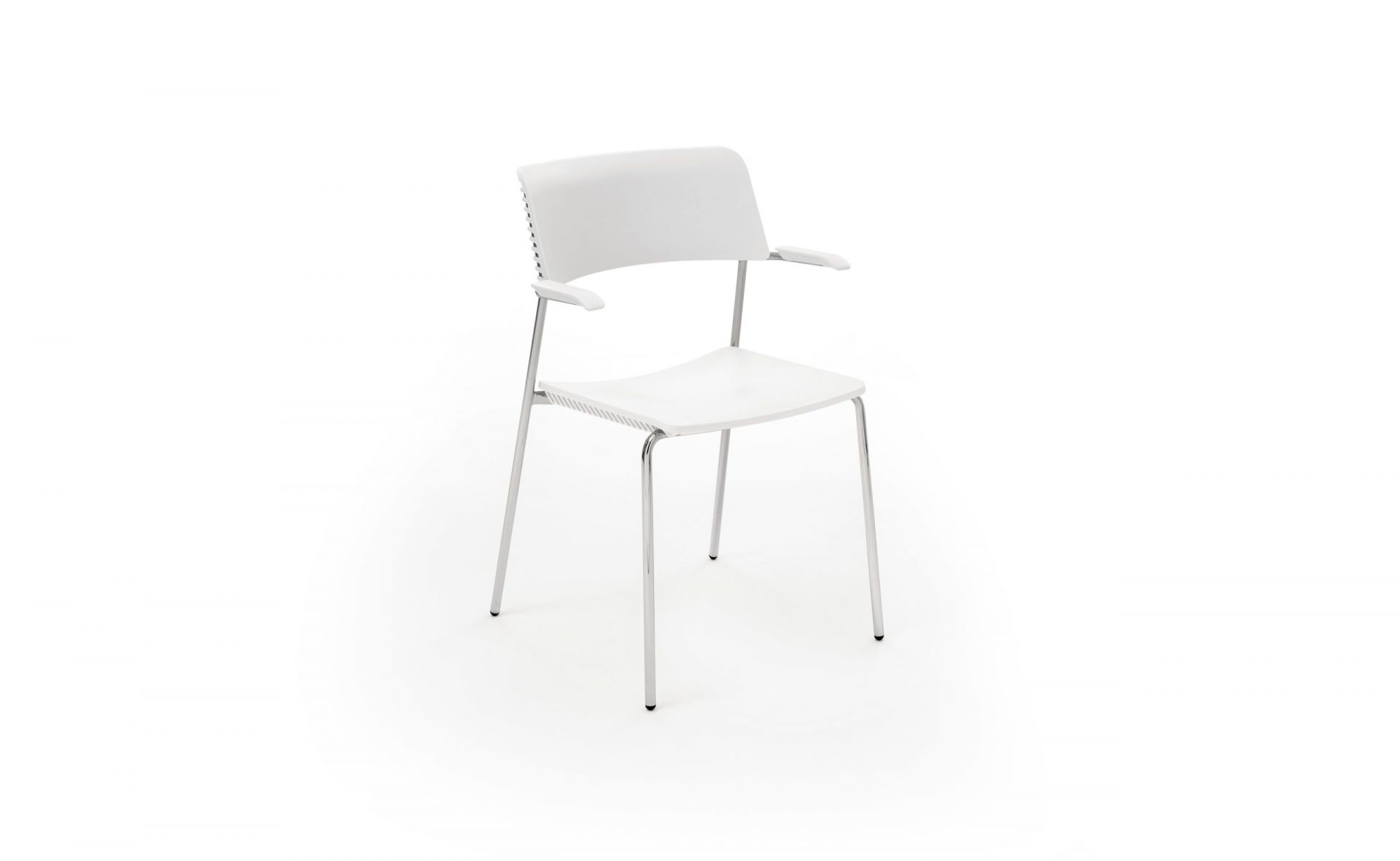 Versione completa della sedia Cala Plus+, fornita montata con braccioli integrati e design raffinato.