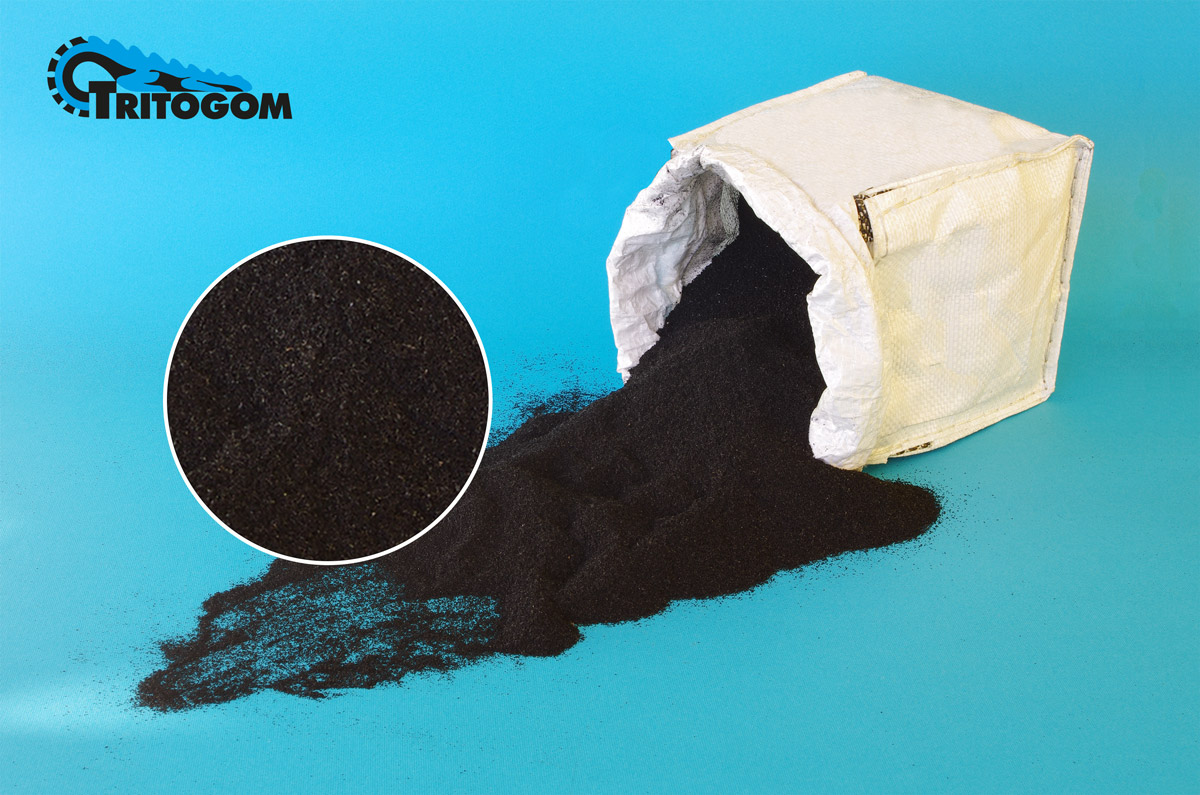 Polverino di gomma di granulometria compresa entro lo 0,0 mm - 0,4 mm. Materiale ottenuto mediante la triturazione meccanica di Pneumatici Fuori Uso.