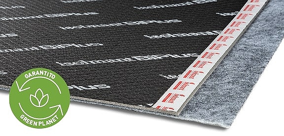 Strato resiliente di alta gamma in polietilene Special con tessuto fibrorinforzato anti-lacerazione sulla faccia superiore e fibra agugliata al di sotto, per eccellente isolamento acustico e maggiore resistenza alla pedonabilità e alla lacerazione in massetti galleggianti.
