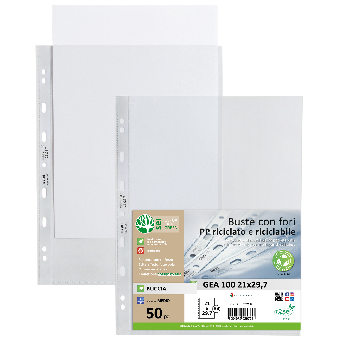 PP peel-texture envelopes, recycled and recyclable, with reinforced universal perforation. High and medium thickness. 100% compostable packaging. Ideal for archiving any type of document, with a particular focus on sustainability