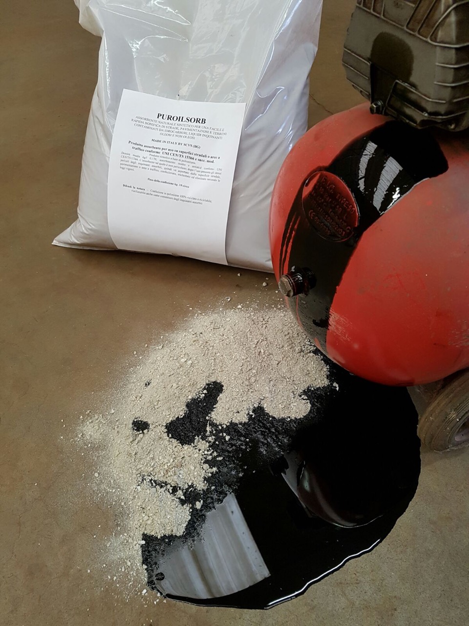 Loose absorbent product based on polyurethane for recovering polluting liquids spilled on solid surfaces such as floors, roads and soil. Contains 100% recycled polyurethane